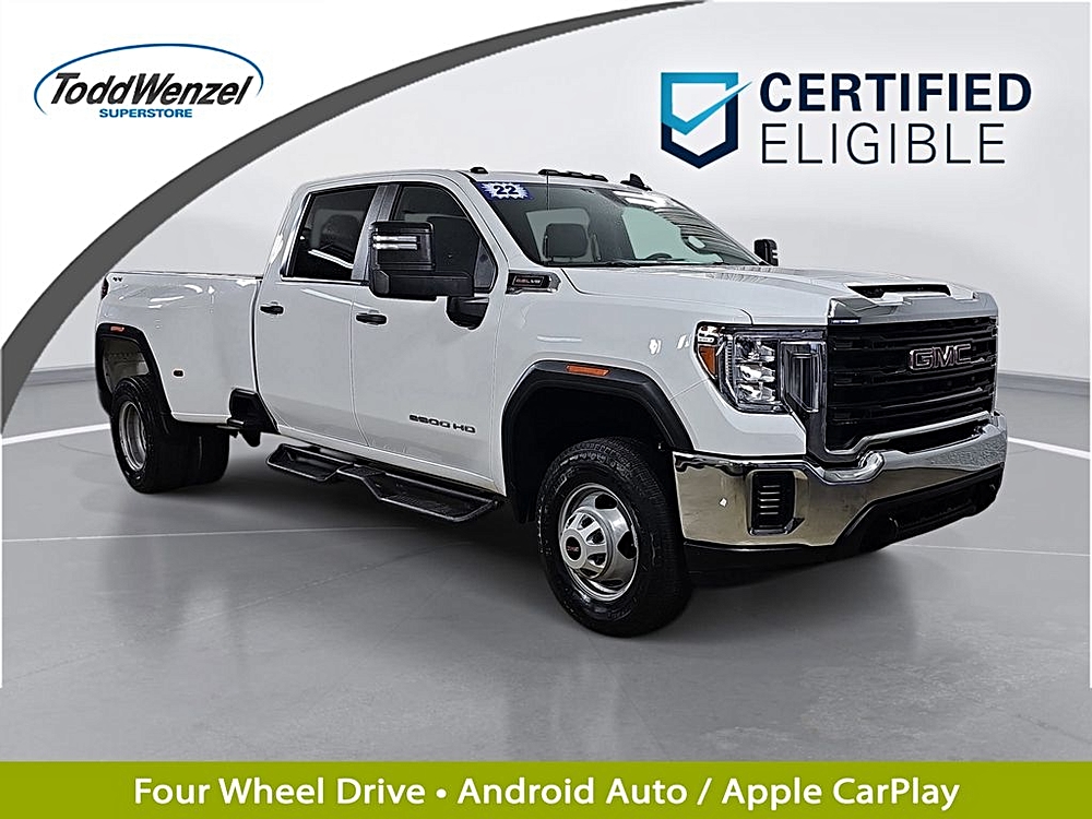 Our 2022 GMC Sierra 3500 PRO Crew Cab 4X4 is a precision tool with plenty of capability in Summit White!…
